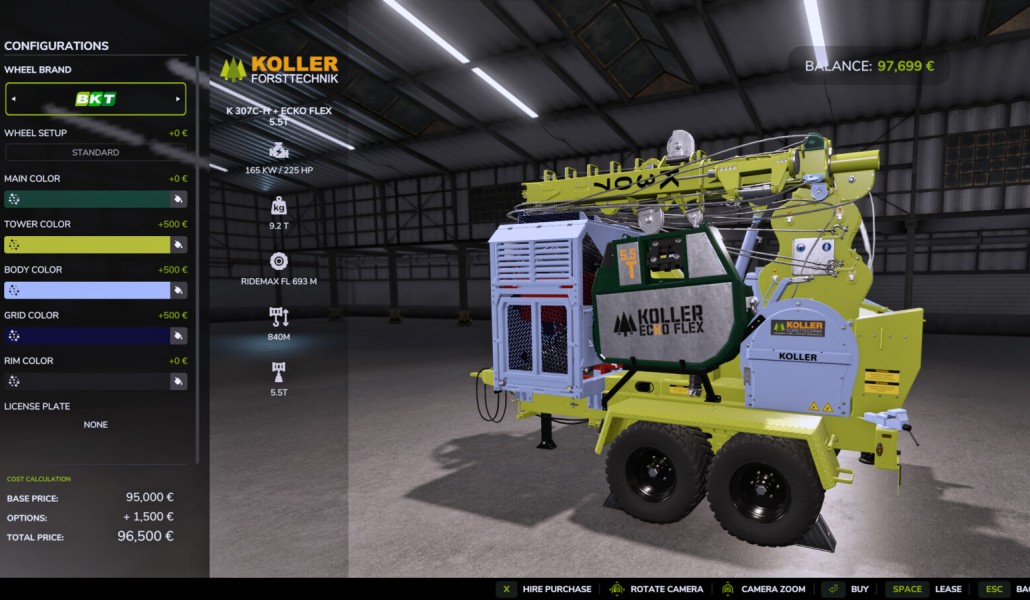 If you use the "unlimitedColorConfigurations" for K307+ EckoFlex models, a selector will appear in the shop to change the color of the yarder carriage. This only changes the color of the unfolded yarder carriage.
